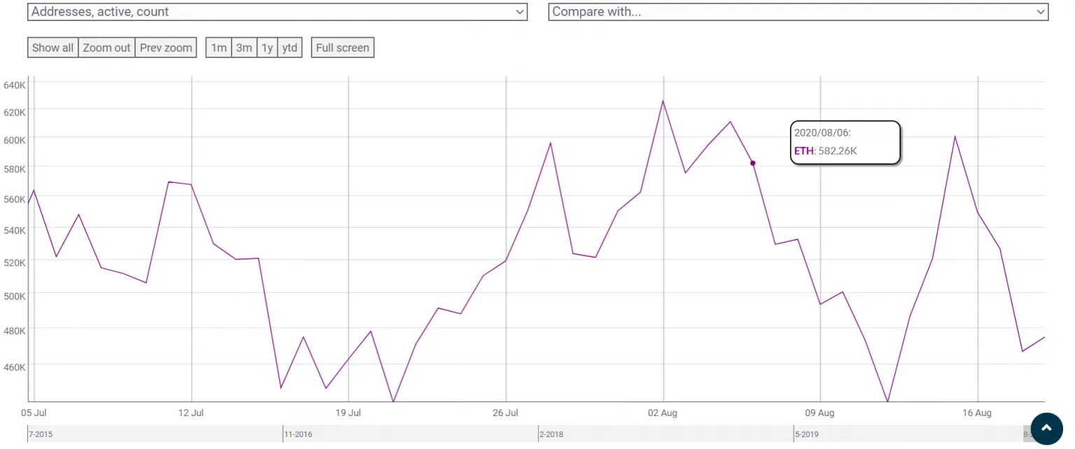 En este momento, las direcciones activas de Ethereum continúan disminuyendo Ethereum registró una inclinación en la valoración, el recuento de direcciones únicas disminuyó constantemente, indicando lo obvio y subrayando lo que se percibió hace una semana también: la recuperación de Ethereum no se basó en fundamentos sólidos.