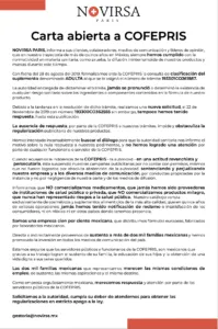 NOVIRSA manda carta abierta a COFEPRIS